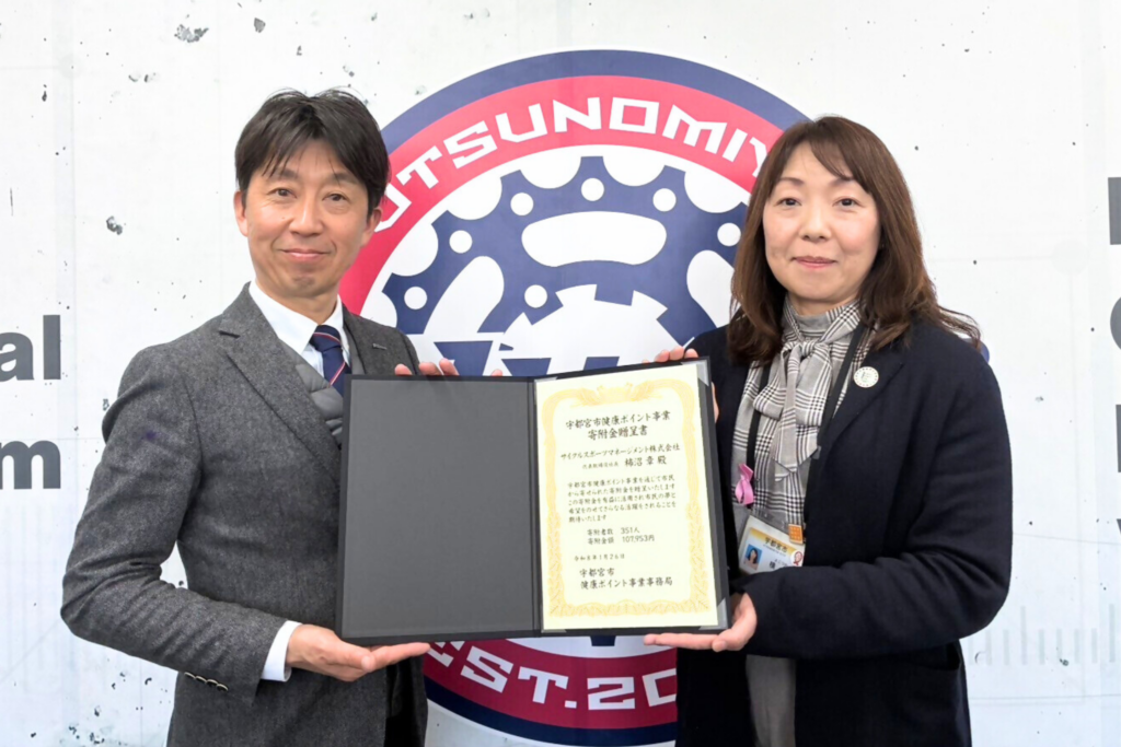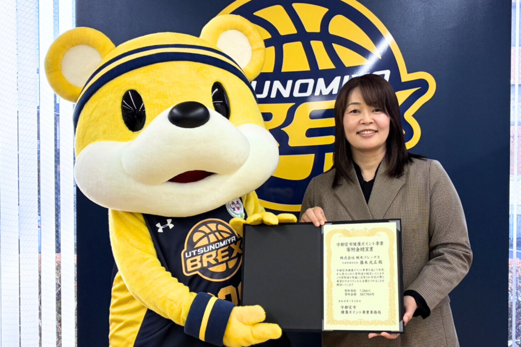令和6年度にて皆様よりいただきました健康ポイントを、市内プロスポーツチームの宇都宮ブレックス様、栃木SC様、宇都宮ブリッツェン様へ寄付いたしました。